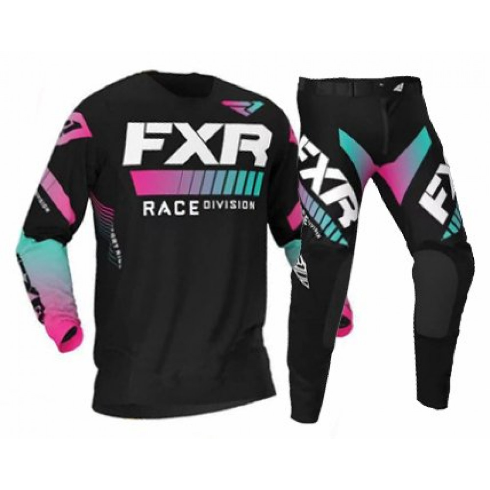 Костюм для мотокросса FXR Race черно-малиново-голубого цвета. Модель унисекс, поэтому подходит как мужчинам, так и женщинам. Модель выполнена из полиэстера, благодаря чему демонстрируется отличная износостойкость и надежность. Ткань отлично справляется с циркуляцией воздуха, поэтому создает приятную вентиляцию и индивидуальный микроклимат, исключая появление лишних потоотделений. Имеет амортизирующие свойства, которые проявляют себя при непредвиденных столкновениях, смягчая силу удара и минимизируя риск травмирования. Анатомическая форма продумана таким образом, чтобы плотно прилегать к телу, полностью повторяя движения корпуса, при этом никак не сковывая. Яркий дизайн станет уникальным дополнением вашего мотообраза. Быстро оформить доставку и купить товар по выгодной цене можно в нашем интернет-магазине Ortan.ru.